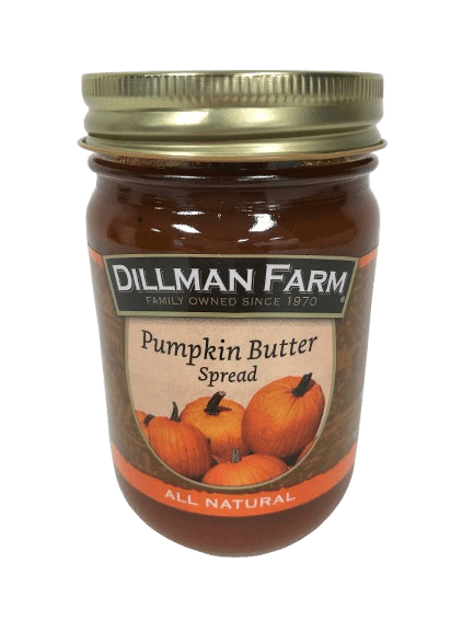 Dillman Farm Pumpkin Butter Spread is made from pumpkin puree and spices. Tastes just like pumpkin pie! Try it on biscuits or have more seasonal fun with it in your favorite cheesecake!